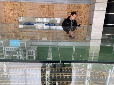 图1 蔡智超老师利用学院的接触网沙盘进行现场直播教学