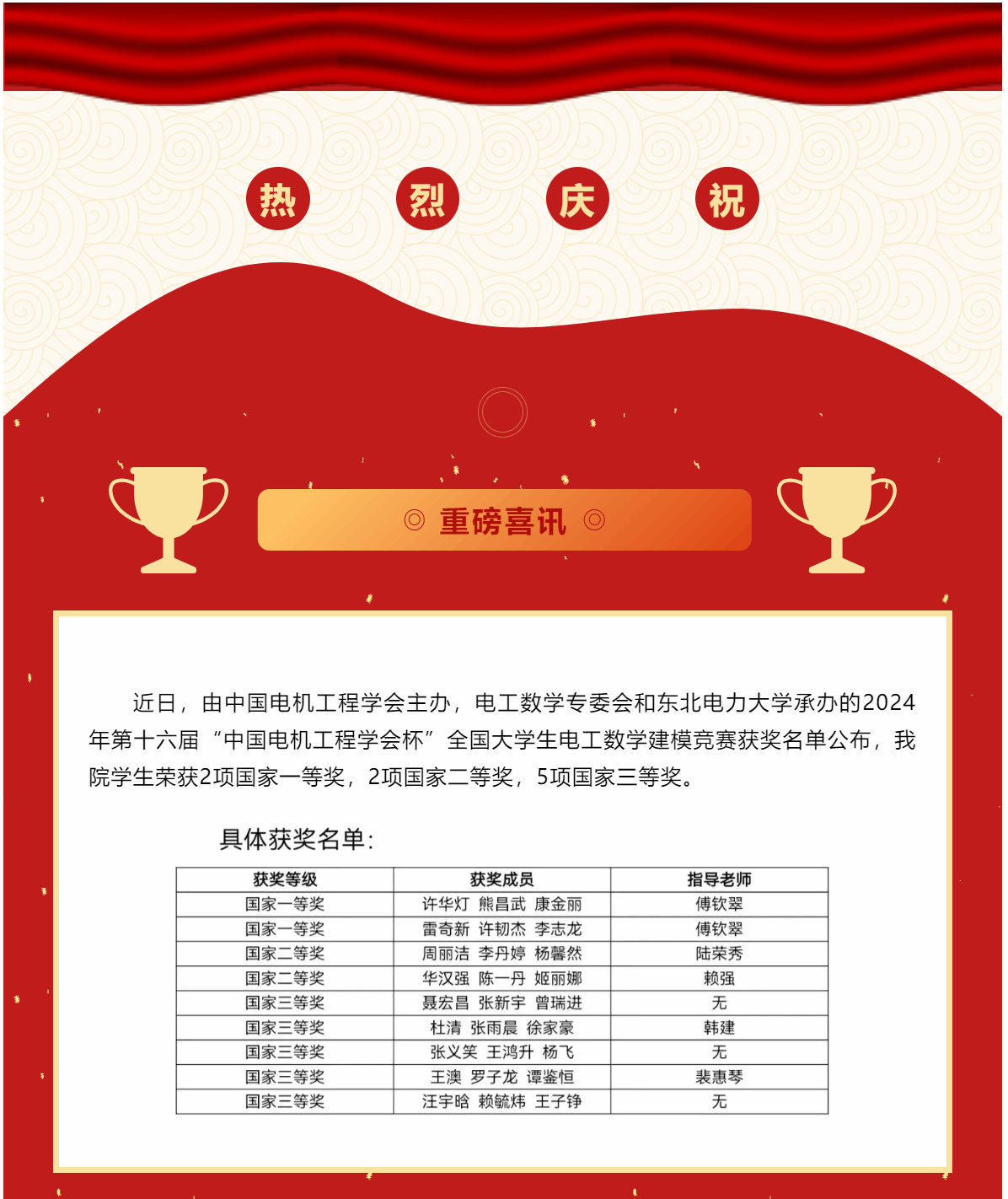 喜报 | 2+2+5!我院在第十六届“中国电机工程学会杯”全国大学生电工数学建模竞赛中获得佳绩