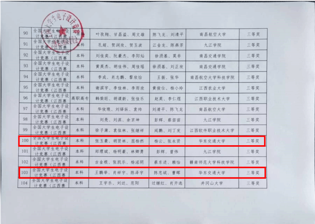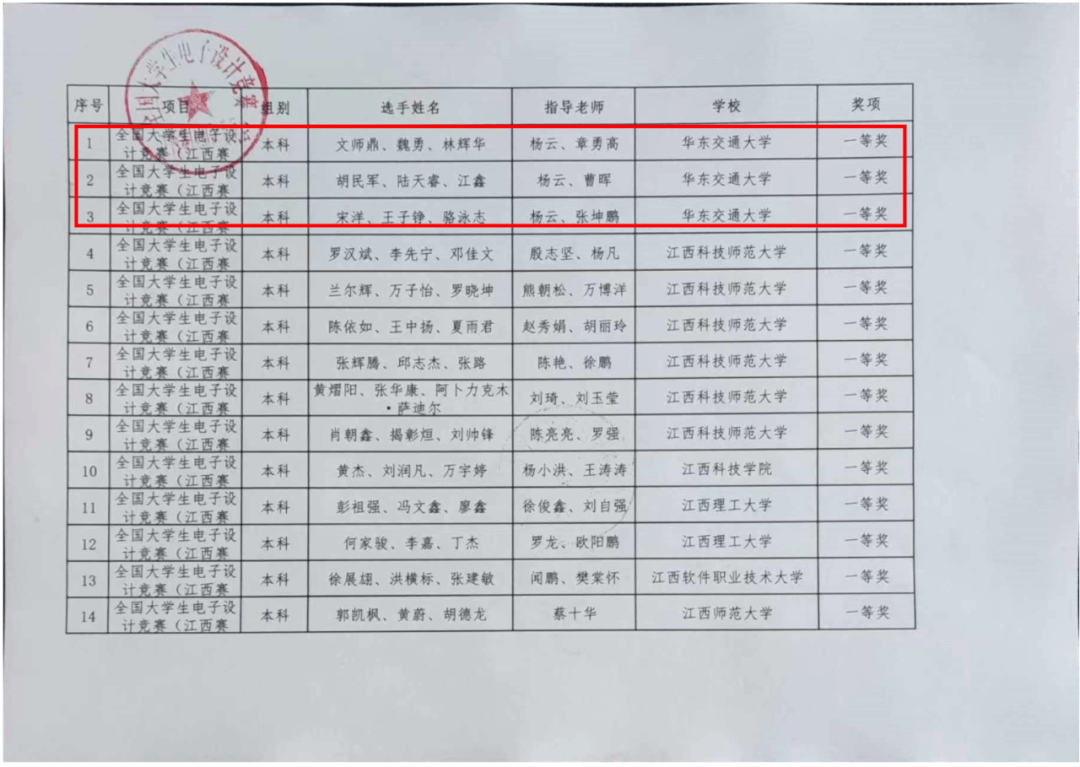 喜报 | 2024年全国电子设计竞赛(江西赛区)获奖名单