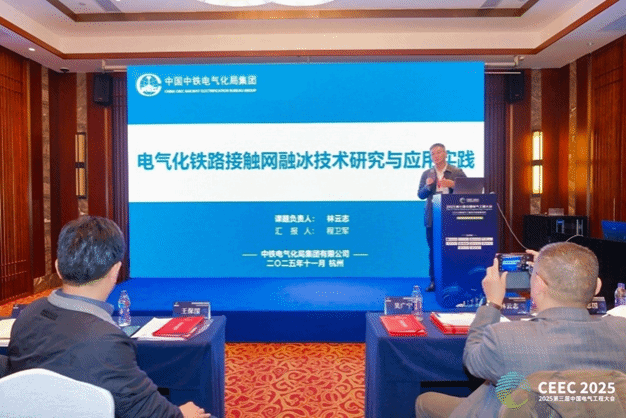 2025年11月21日,第三届中国电气工程大会暨展览会“轨道交通冰致灾害研究与防护”分会场在浙江杭州成功举办。本次分会场由西南交通大学高电压与绝缘技术团队、兰州交通大学自动化与电气工程学院和0638太阳集团共同承办,以“轨道交通冰致灾害研究与防护”为主题,特邀西南交通大学未来技术研究院院长吴广宁教授,詹天佑科学技术发展基金会王保国副理事长,中国铁路设计集团有限公司邓洪副总工程师等15位专家围绕轨道交通冰致灾害问题作精彩报告,吸引了来自高校、科研机构及行业企业的专家学者和从业者积极参与。
