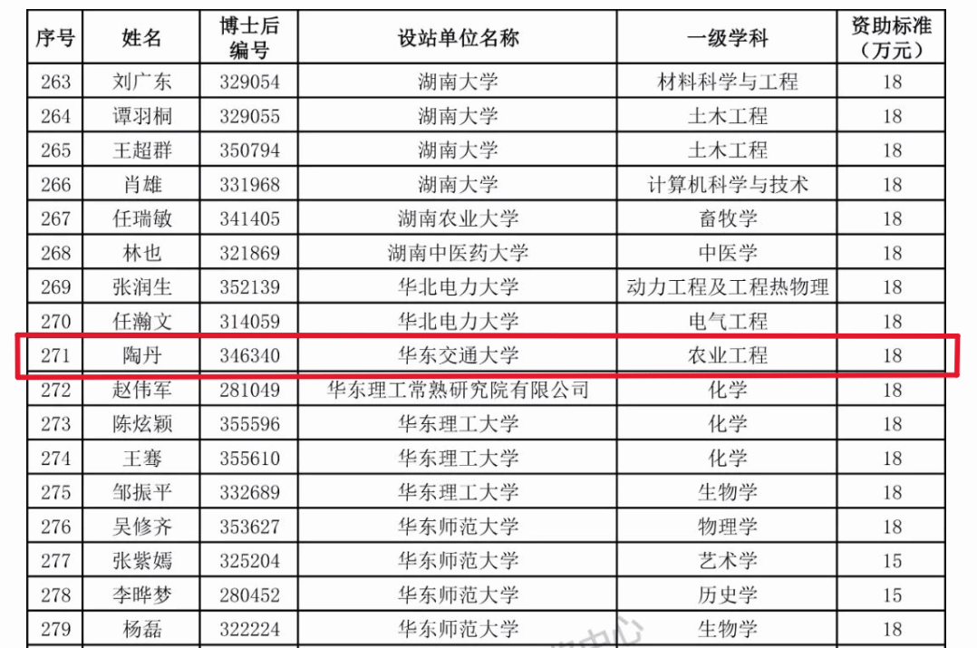 2024年度中国博士后科学基金第17批特别资助拟资助人员名单公示,我院陶丹老师入选,恭喜陶丹老师!!