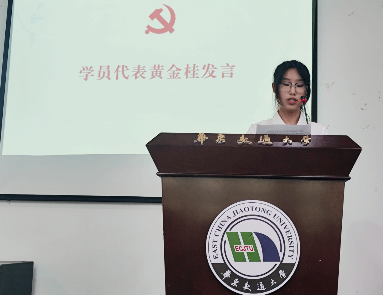 学员代表黄金桂发表讲话。她认为党课是接受党的教育和培养的关键途径,也是加强党性修养、提升政治觉悟的必修课程。她强调,既要打下坚实的基础,又要与时俱进地学习创新理论,努力成为全面发展的优秀人才,为将来“为祖国的事业添砖加瓦”做好充分准备,真正将青春的责任感转化为“与时代同频共振”的强大动力。