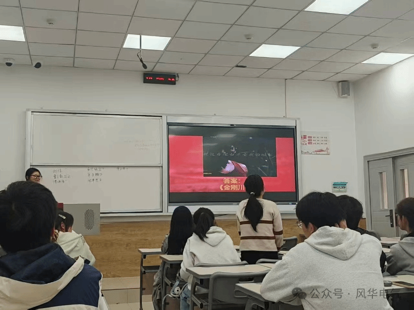 “屏幕上,红色经典的精彩片段经精心剪辑后依次闪现 —— 或是革命先辈振臂高呼的热血瞬间,或是战火中坚守信仰的动人场景……” 随着视频剪辑的推进,熟悉的情节瞬间点燃全场记忆。刘佳老师结合历史背景解读电影片段背后的时代意义,同学们则踊跃分享视频中令自己印象最深的画面。