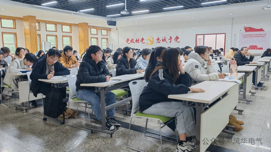 2025年12月18日,电气学院分党校第27期发展对象暨预备党员党课培训在天佑会堂举行,马克思主义学院张静老师担任主讲人,为全体学员讲授党课第四讲——《锚定中国式现代化的宏伟目标接续奋斗》。