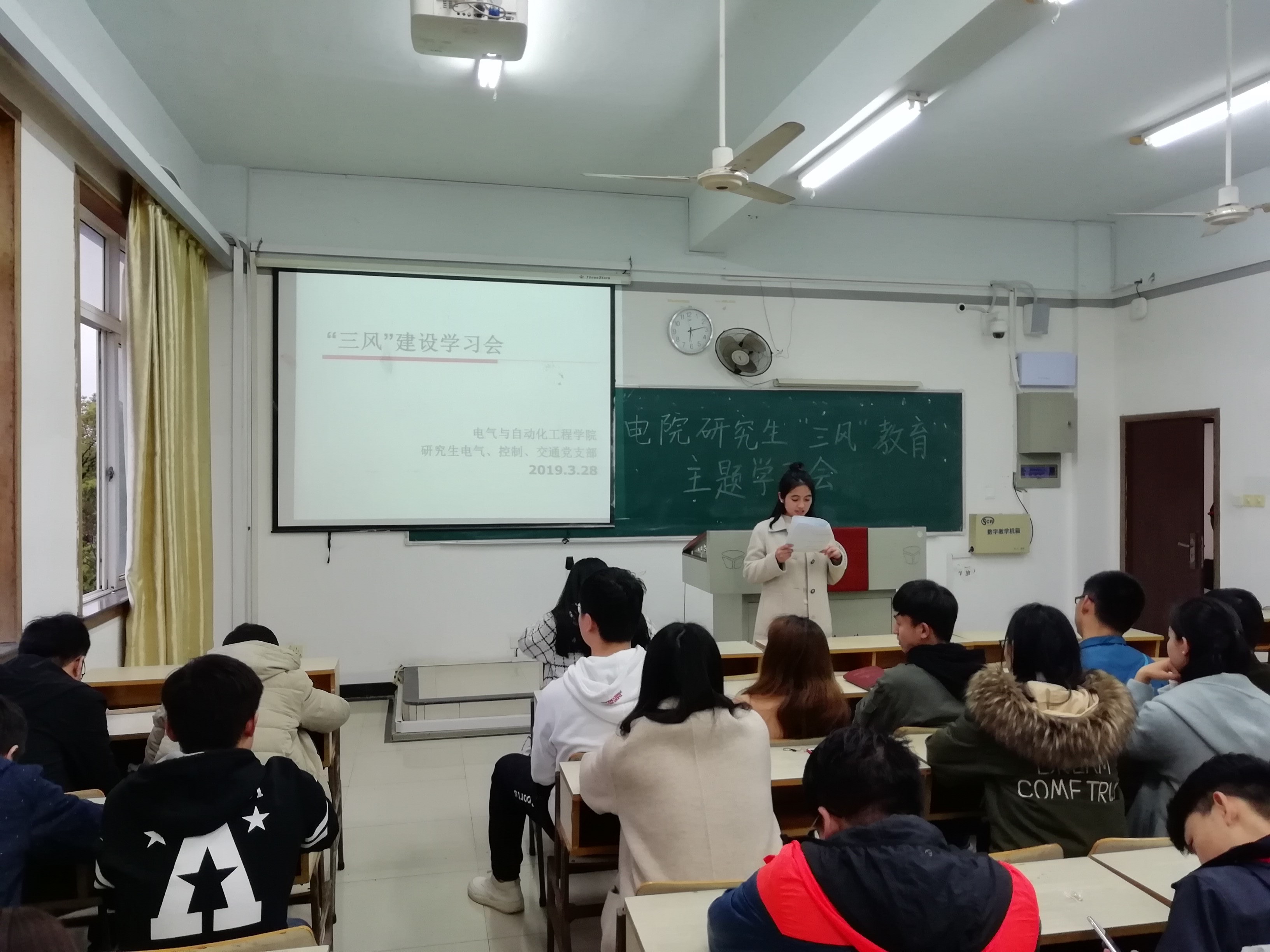 日前,研究生电气、交通、控制党支部在10栋305,共同开展“三风”教育主题学习会,旨在贯彻落实中央及省委要求,加强学风建设,营造良好的的学习氛围,共同推进“花椒”号高铁向前奋进。