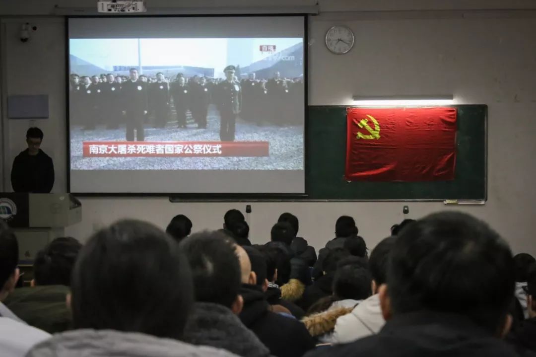 齐唱国歌、为南京大屠杀死难者默哀、聆听青少年代表宣读《和平宣言》......120余名学生党员集体观看国家公祭仪式重播,缅怀南京大屠杀死难者,缅怀所有惨遭日本侵略者杀戮的死难同胞,缅怀为中国人民抗日战争胜利献出生命的革命先烈和民族英雄。