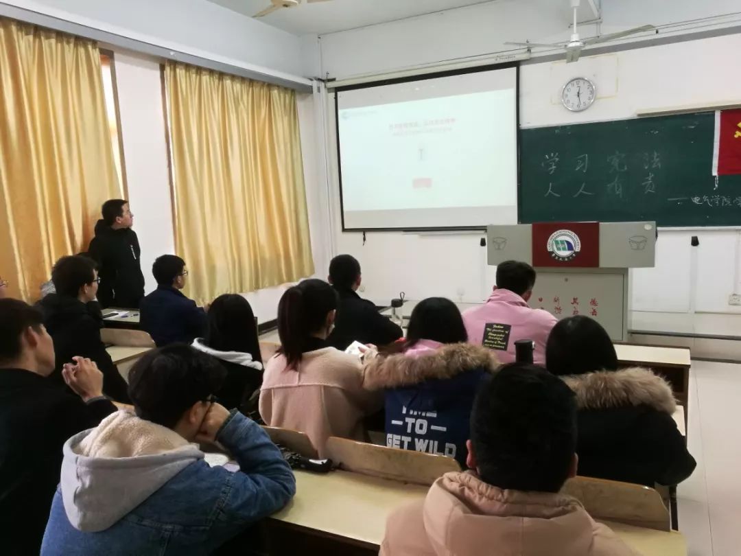 集中学习结束后,学生第四党支部带班党员在新生班级,以主题班会的形式组织学习、加强宣传、传递宪法精神,使学生们更加明确自己的权利和义务,能够充分认识我国的国家性质和基本制度,增强学生们的宪法意识。