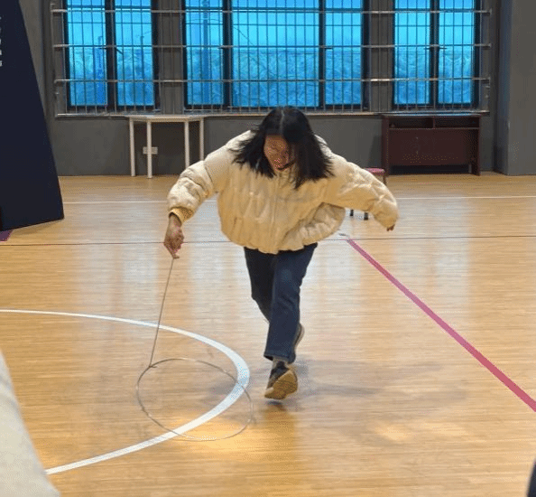 在滚铁环接力赛中,老师们井然有序地列队于起跑线,怀揣着对童年的怀念和对胜利的渴望。老师们滚动铁环穿越场地,绕过标志桶后返回,将接力棒传递给下一位队友,直至全员完成比赛,最终依据时间长短决出名次。赛场上,老师们手法娴熟,动作连贯,铁环在他们的掌控下轻盈飞转,不仅展现了高超的技巧,也传递出无尽的欢乐与默契。每一次滚铁环的轨迹,都像是在绘制一幅幅关于童年的美好画卷,让人不禁沉醉在那份简单而纯粹的幸福之中,仿佛时光倒流,重拾了儿时的纯真与梦想。