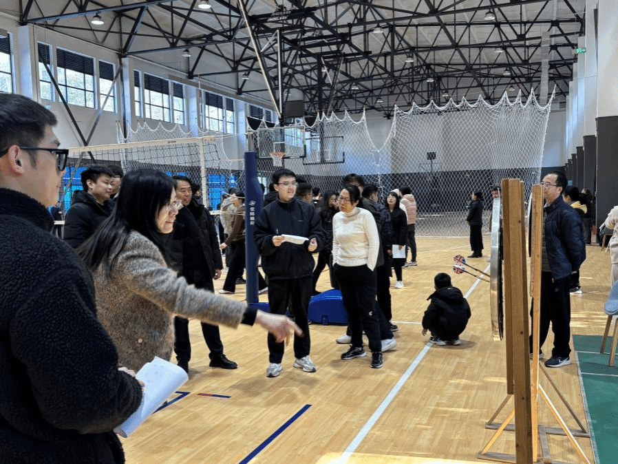 为丰富教职工的校园文化生活,构建一个健康、文明且充满活力的校园环境,增强教师团队的凝聚力与合作精神,促进身心健康发展,电气学院于1月12日在南区风雨球馆成功举办一场别开生面的教职工趣味运动会。本次活动精心设计了包括滚铁环、同心鼓、接力投篮、投壶及飞镖在内的五大项目,吸引了全体教职工的热情参与。这不仅是一场充满乐趣与活力的盛宴,更是一次加深老师间情谊、丰富业余生活的绝佳机会。接下来,就让我们一同回顾那些精彩纷呈的比赛瞬间吧!