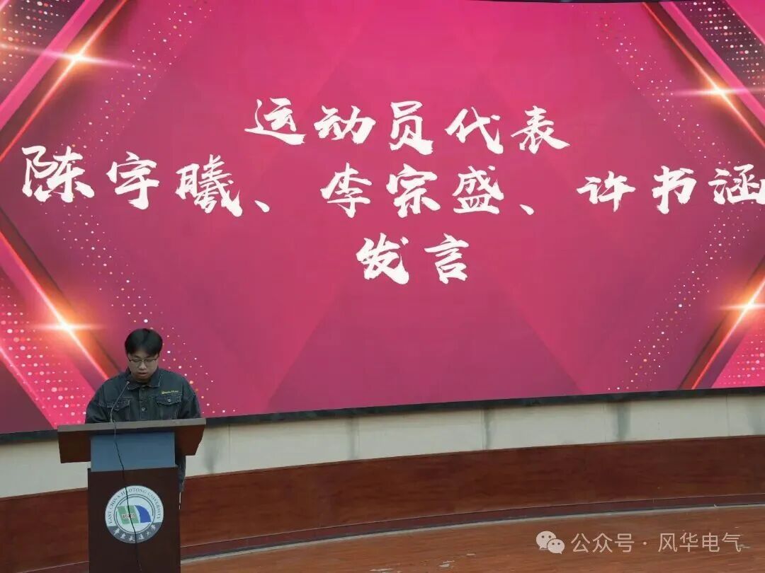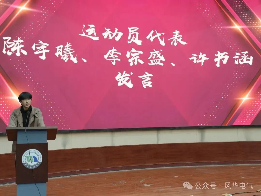 随后,运动员代表陈宇曦、李宗盛和许书涵上台发言。他们表示,奖牌的重量里,有自己的汗水,学长学姐的指导,更有学院的支持,未来会把赛场上的拼劲带到学习里,继续为学院争光。他们的发言饱含青春力量,又满怀真挚情感,激励着全体电气人在成长路上勇毅前行。