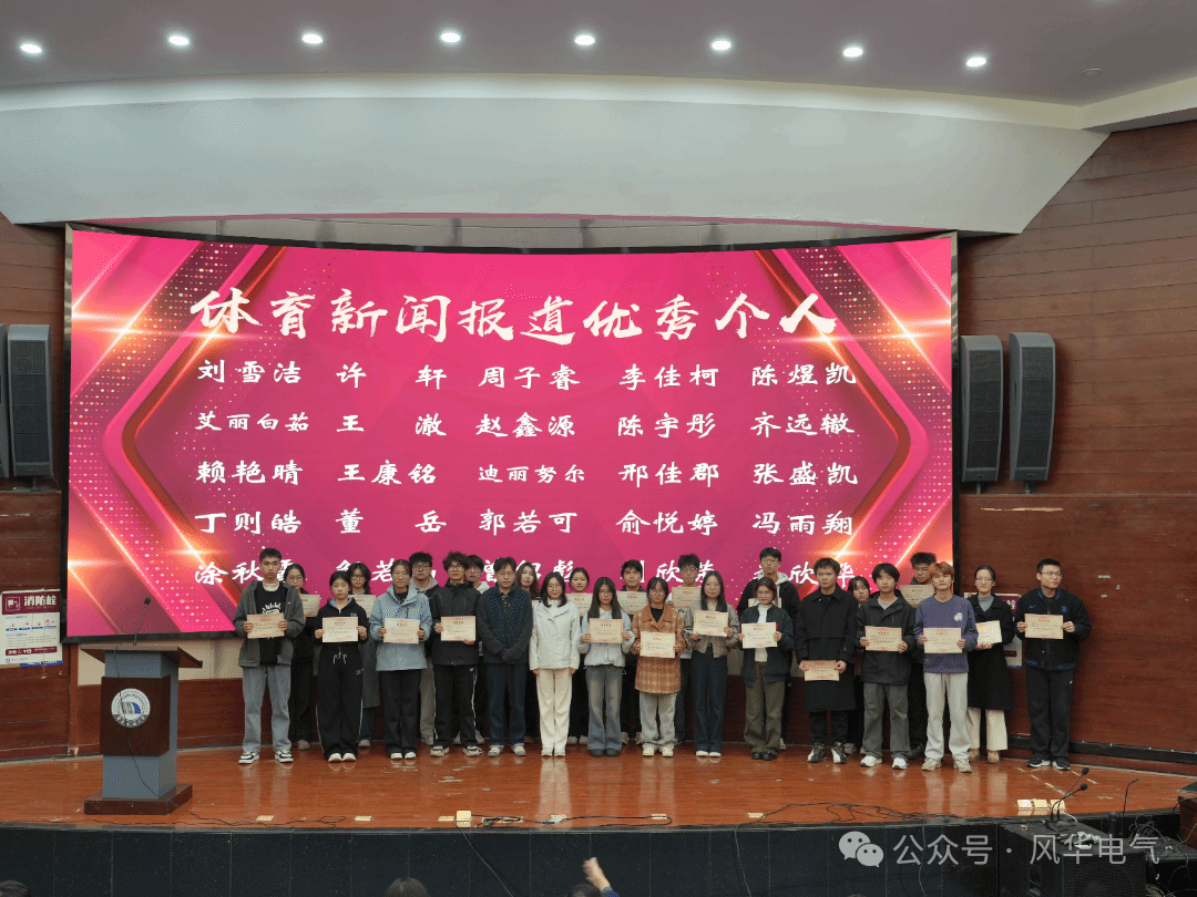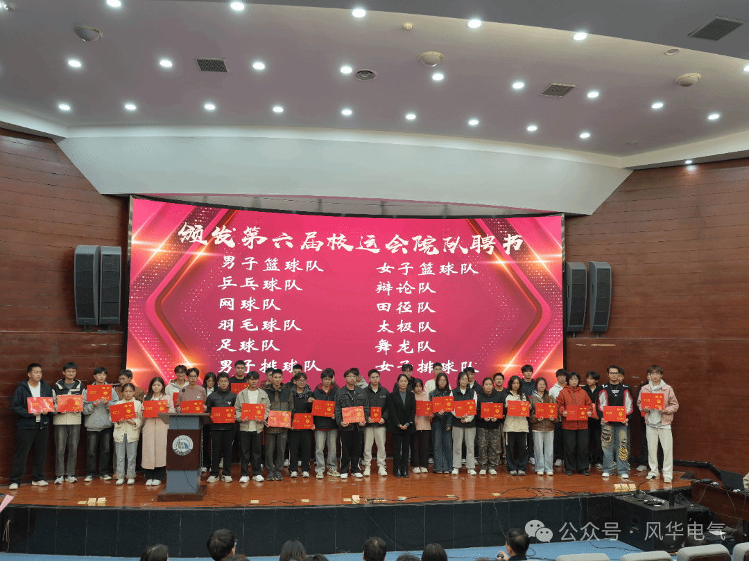 为共同回顾赛场辉煌,表彰在拼搏奋进的运动健儿与幕后辛勤付出的工作人员,进一步凝聚全院师生的奋斗力量,电气学院于11月26日晚在北区圆形报告厅召开校运会表彰大会。院党委副书记刘修财老师,院党委委员、党委组织员刘佳老师,院学工办主任、团委书记戴晶晶老师,院学工办副主任、团委副书记夏圣伟老师、刘锋老师、江雅琪老师,学工办全体辅导员以及各运动队成员、教练共同出席本次大会。大会由学生会主席肖迪夫主持。