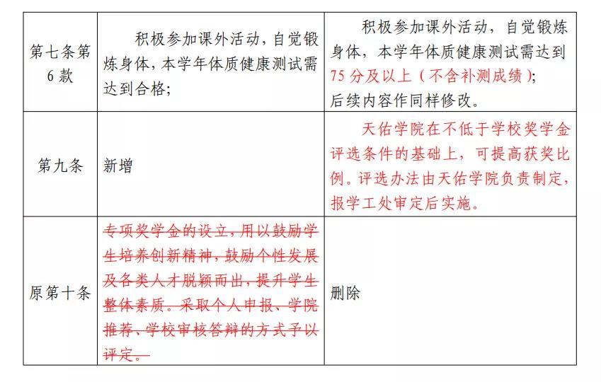 第九条 天佑学院在不低于学校奖学金评选条件的基础上,可提高获奖比例。具体评选办法由天佑学院负责制定,报学工处审定后实施。