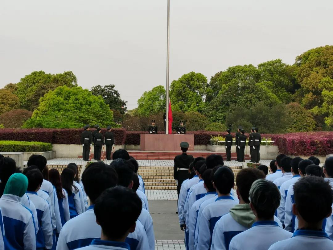 五十年,沥心血,桃李深情;学校史,承校风,扬我校名。3月26日早,迎着朝阳,国旗护卫队迈着铿锵有力的步伐,整齐划一地来到国旗台下。在慷慨激昂的《义勇军进行曲》中,升旗手奋力一挥,鲜艳的五星红旗在全体师生的注目礼中,徐徐升起,迎风飘扬。