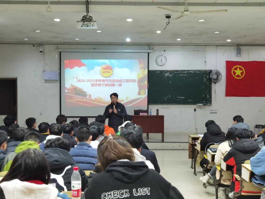 为提高团学骨干自身综合素质和工作能力,进一步加强团学骨干队伍和班级团支委队伍建设,更好地服务同学,12月2日晚,我院于教10栋举行2020-2021学年电气学院团学骨干培训第一期开班典礼暨团学骨干培训第一课。校团委书记李雪峰,电气学院党委副书记刘修财,学工办副主任兼团委副书记苑莹、戴晶晶出席本次大会。