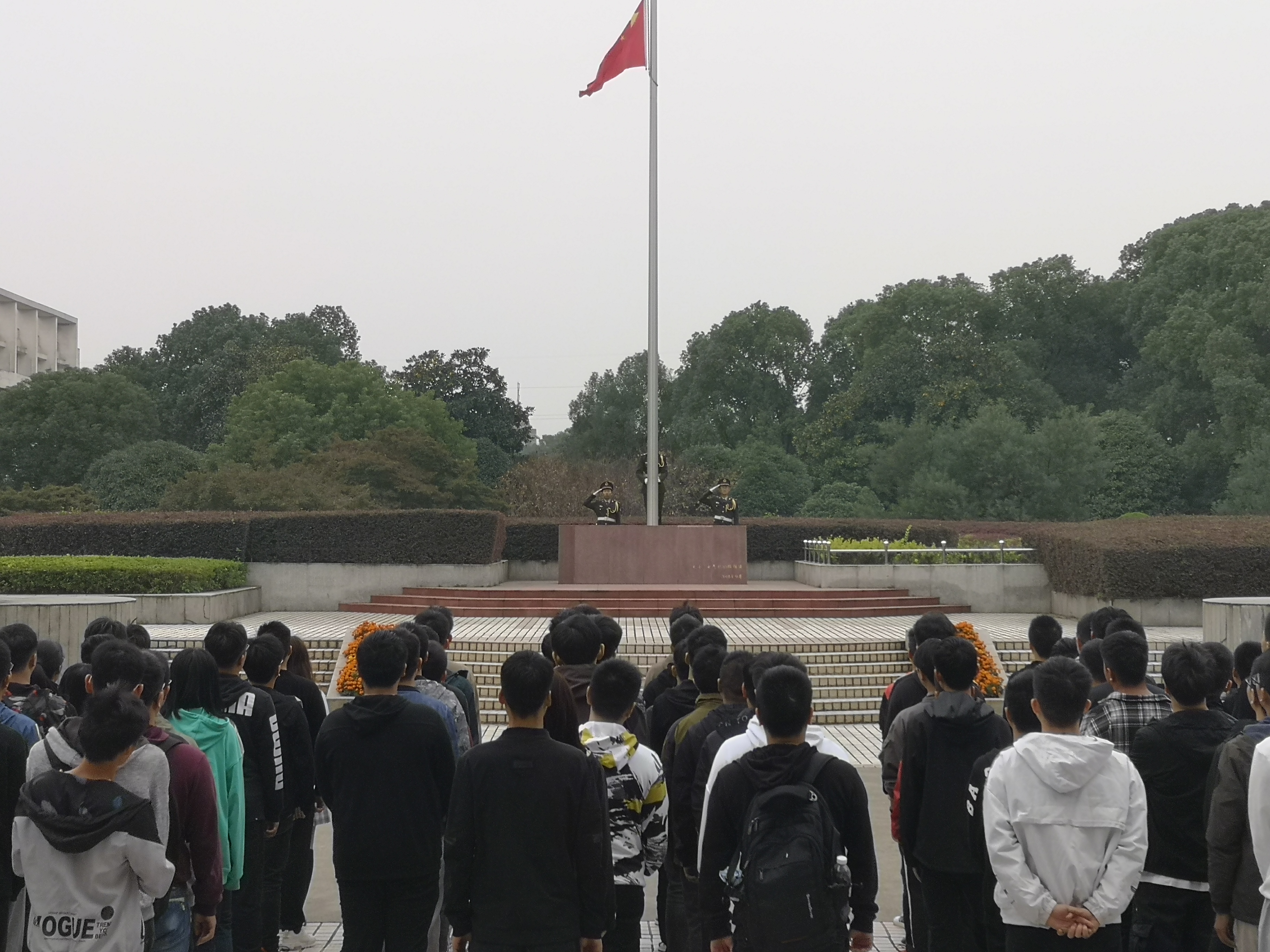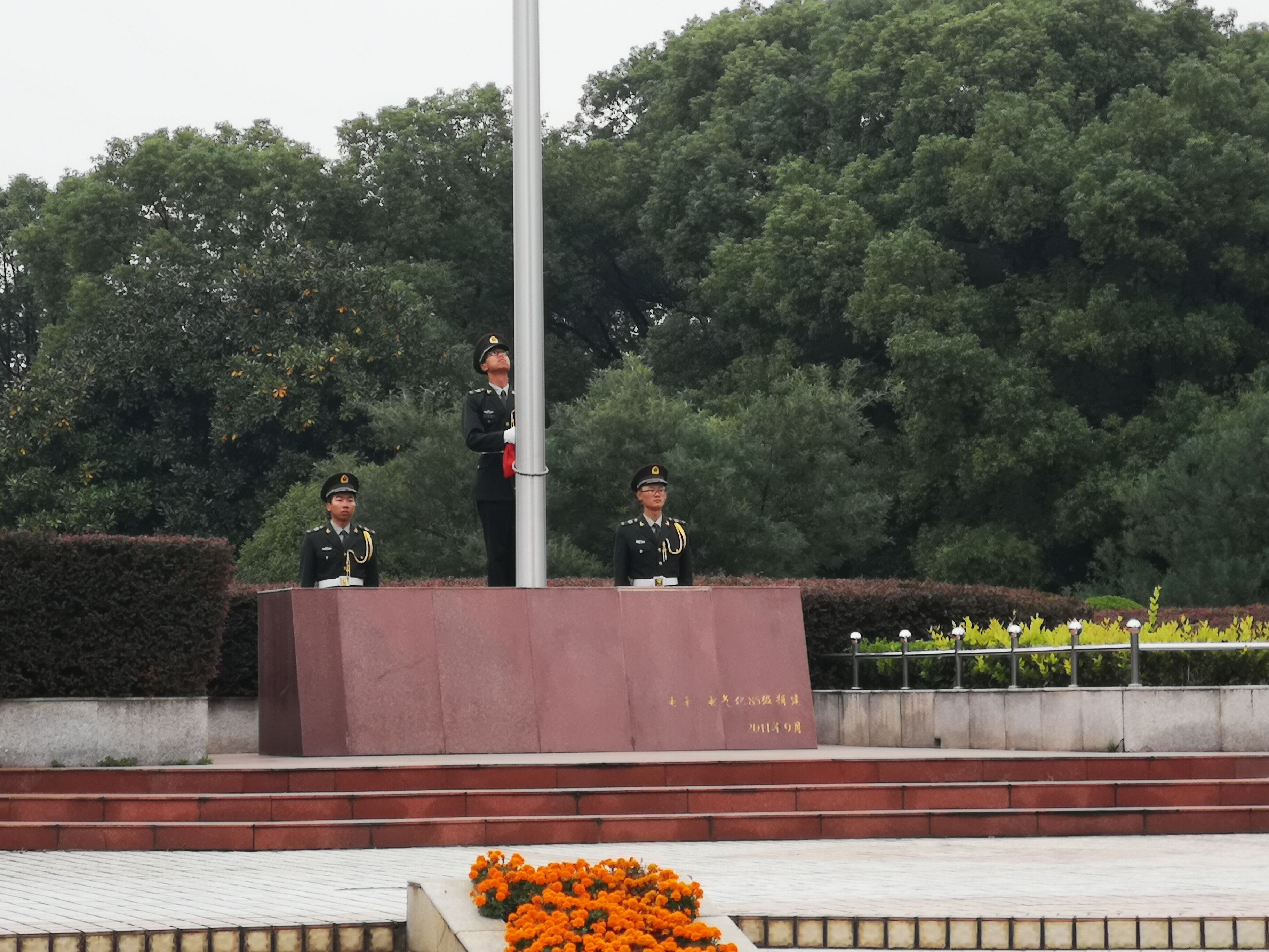 秋风微凉,细雨绵绵。10月15日,伴随着义勇军进行曲,国旗护卫队在一片庄严肃穆中将鲜艳的五星红旗升起,全体师生行注目礼,高唱国歌。电气学院18级电力牵引1班、2班、5班,过程控制1班,工业自动化1班、2班以及19级电气工程及其自动化6班参加升旗仪式。