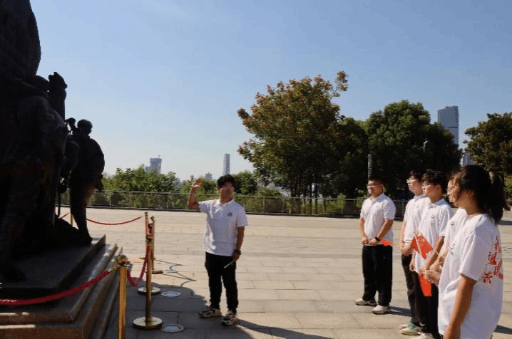 人民军队雕塑在阳光的沐浴下熠熠生辉,仿佛被赋予了生命的光辉。学生会负责人甘杰,雷健波向同学们讲述着巍峨矗立的雕塑背后,那些感人至深的革命传奇。他们细致入微的解说,不仅引领大家深入探寻了先烈们英勇无畏的革命历程,更如同一把钥匙,轻轻开启了同学们内心深处爱国情感的闸门。这份情感的涌动,让每位同学都更加深切地热爱着我们的祖国,激发起为祖国的繁荣富强贡献自己全部力量的坚定信念。