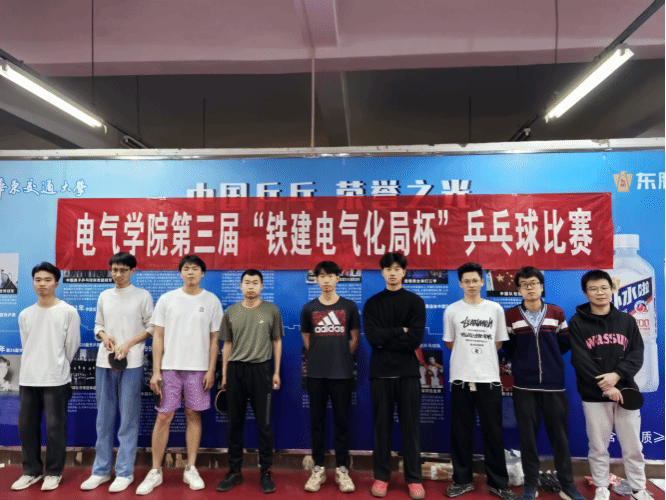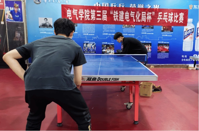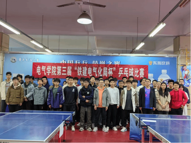 为深入贯彻全民健身理念,充实电气学子的校园时光,提升同学们的健康水平,彰显青春少年的矫健英姿与蓬勃力量,3月22日与23日,电气学院第三届 “铁建电气化局杯” 乒乓球比赛在学校室内乒乓球馆举行。本次比赛吸引了众多学生积极参与,同学们热情洋溢,对本次比赛充满期待。