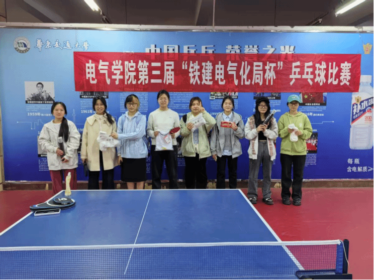 此次 “铁建电气化局杯” 乒乓球比赛不仅为电气学院师生提供了一个展示自我、切磋球技的平台,还增进了师生之间、同学之间的交流与友谊,丰富了校园文化生活。愿同学们在未来继续热爱乒乓球,挥洒汗水,在青春的赛场上不断突破自我,在大学生活中书写更多辉煌篇章。