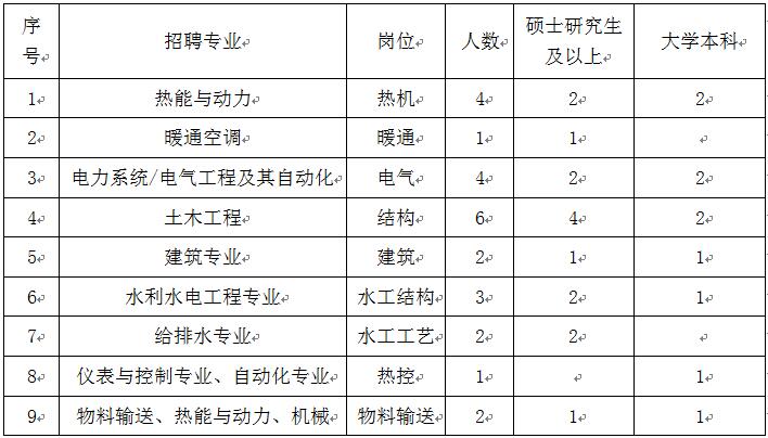 中国电建集团江西省电力设计院有限公司成立于1958年,是世界五百强企业——中国电力建设集团有限公司的全资成员企业。公司立足于能源发展、能源服务,具有电力工程设计、工程勘察综合类、工程总承包、工程咨询、工程监理、工程测量等多项国家甲级资质及境外工程总承包资质,是国家高新技术企业。我院发电工程公司主要从事国内外电源(火力发电、风电、光伏、光热、燃气、生物质)工程、供热工程、环境水处理工程等业务。因发电工程公司发展需要,拟公开招聘专业设计人员25人。