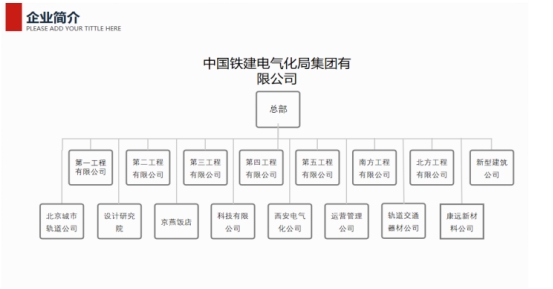 中国铁建电气化局集团有限公司,隶属于世界500强——中国铁建股份有限公司,2005年7月正式组建成立,总部设在北京,公司成员单位中有三家工程公司的前身为铁道兵第一、第二、第三直属通号营。公司是中国高铁“四电”行业唯一的系统集成承包商和运营服务商,主要从事高速铁路电气化、电力、通信、信号和城市轨道交通、公路交通、机电设备、输变电、新能源、智慧城市和信息技术等工程建设,是集工程承包、设计咨询、工业制造、运营维管、投资开发及其他新兴产业为一体的“四电”工程承包商和系统集成商,更是集铁路“四电”投资商与服务商于一体的全生命周期产业运营商。公司拥有承包境外工程、设备材料出口和对外派遣劳务等经营权。