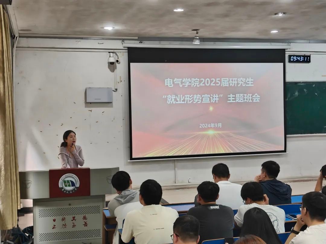 为全面提升我院研究生对就业形势的深刻理解和职业生涯规划能力,9月3日上午,我院辅导员李梦影在电气楼111教室组织召开了2025届研究生就业形势宣讲班会。此次班会不仅着眼于帮助研究生明确求职目标,更旨在引导大家对当前社会和经济背景下的就业趋势进行深层次的思考与分析,从而为实现更高质量的就业做好充分准备。
