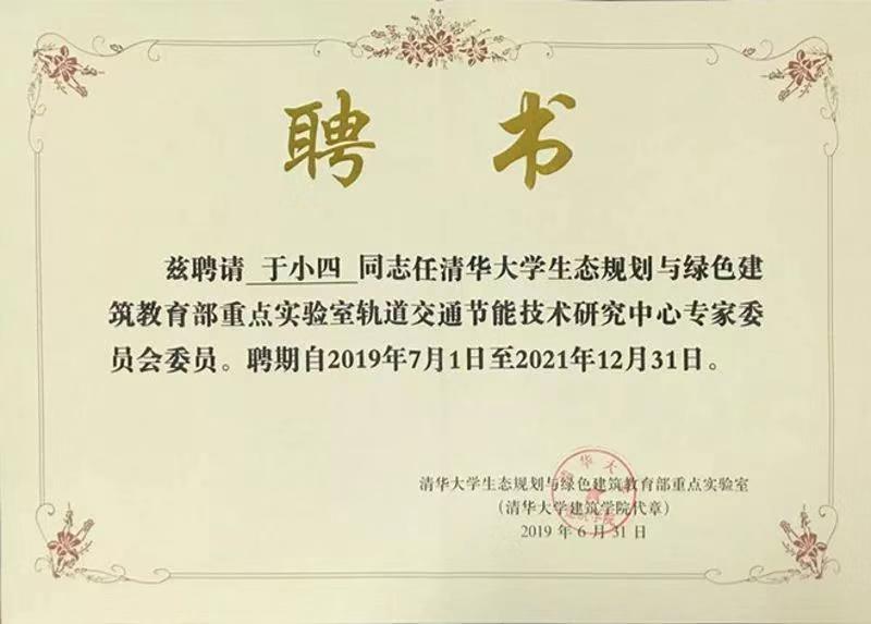 近日,清华大学生态规划与绿色建筑教育部重点实验室轨道交通节能技术研究中心专家委员会委员聘任仪式在京隆重举行。中国中铁七局集团有限公司副总工程师、我院1993级铁道电气化专业校友于小四获聘清华大学轨道交通节能技术研究中心专家委员会委员。